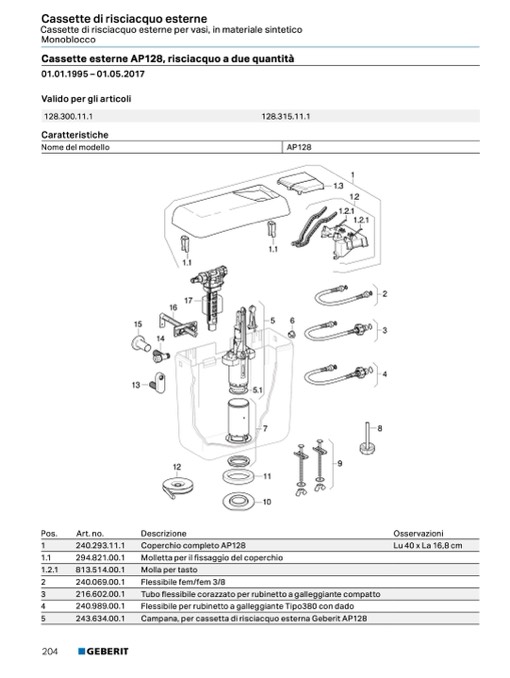 Cassette esterne AP128, risciacquo a due quantità