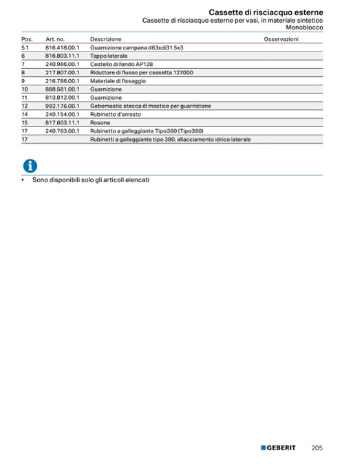 • Comandi WC HyTouch, manuali / pneumatici, risciacquo ad una quantità → pag. 155