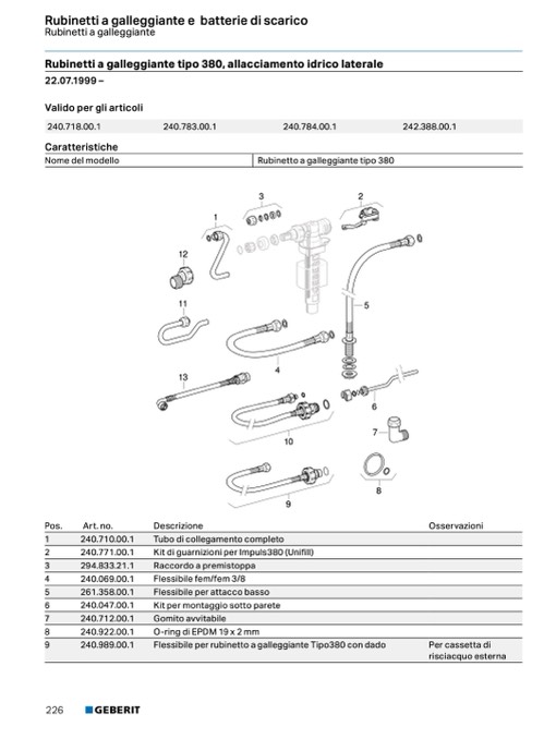 Flessibile per rubinetto a galleggiante Tipo380 con dado