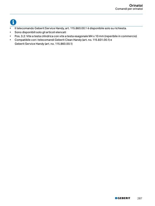 Il telecomando Geberit Service Handy, art. 115.860.00.1 è disponibile solo su richiesta.