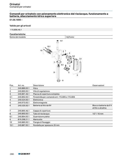 Comandi per orinatoio con azionamento elettronico del risciacquo, funzionamento a
