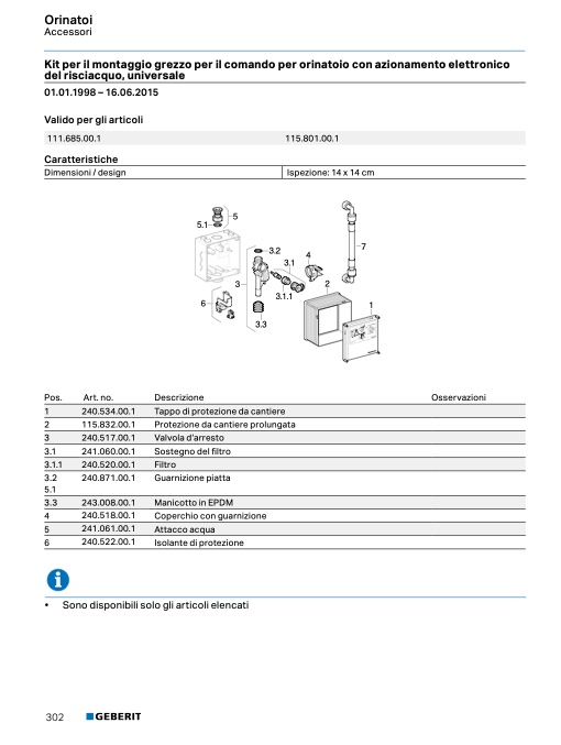 Kit per il montaggio grezzo per il comando per orinatoio con azionamento elettronico