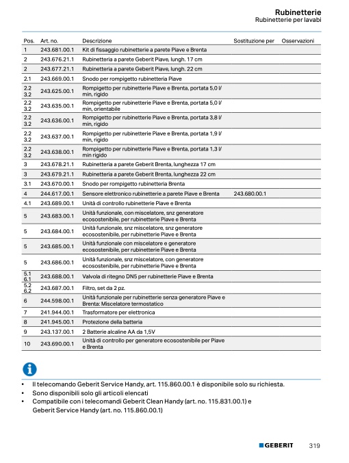 • Il telecomando Geberit Service Handy, art. 115.860.00.1 è disponibile solo su richiesta.