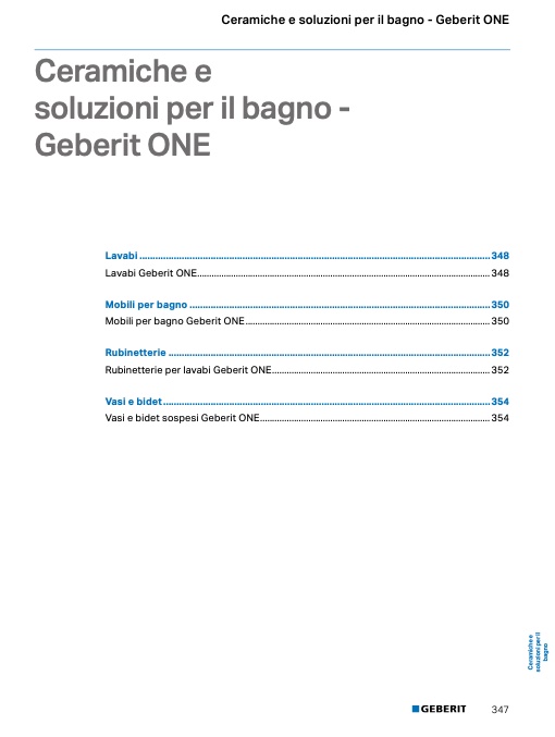 Rubinetterie per lavabi Geberit ONE.......................................................................................... 352