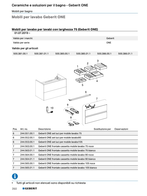 Geberit ONE frontale cassetto mobile lavabo 90 bnc
