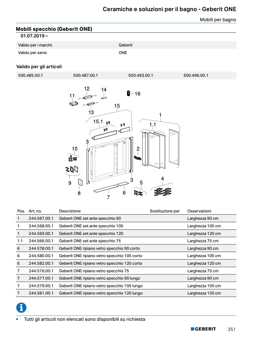 1.1 244.566.00.1 Geberit ONE set ante specchio 75
