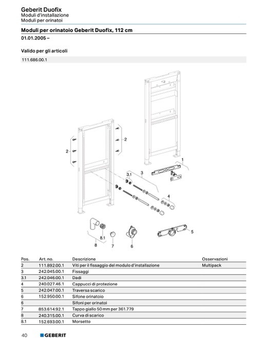 Moduli per orinatoio Geberit Duofix, 112 cm
