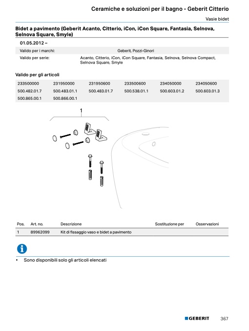 Bidet a pavimento (Geberit Acanto, Citterio, iCon, iCon Square, Fantasia, Selnova,