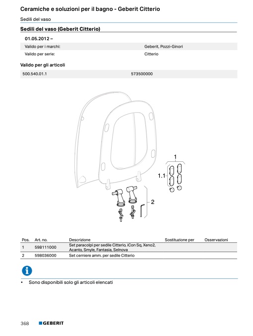 Set paracolpi per sedile Citterio, iCon Sq, Xeno2,