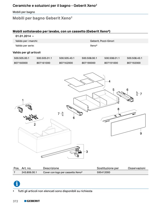 Mobili sottolavabo per lavabo, con un cassetto (Geberit Xeno2)