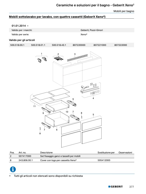 Mobili sottolavabo per lavabo, con quattro cassetti (Geberit Xeno2, 420)