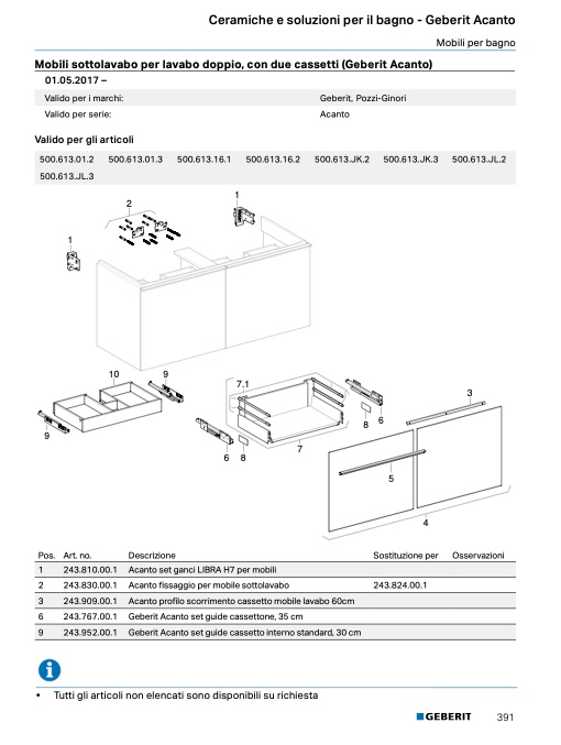 22430.392099.0.0.10.1 FleAsscibainleto profilo scorrimento cassetto mobile lavabo 60cm