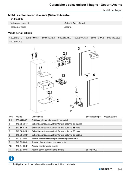 243.865.16.1 Geberit Acanto anta vetro inferiore colonna 38