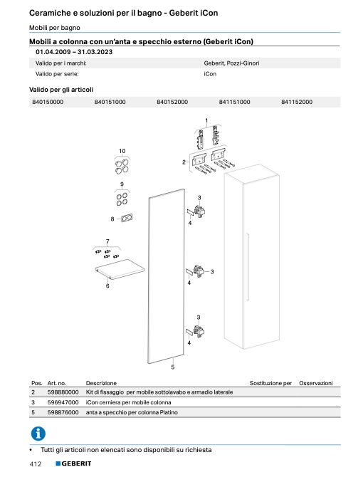 Mobili a colonna con un’anta e specchio esterno (Geberit iCon)