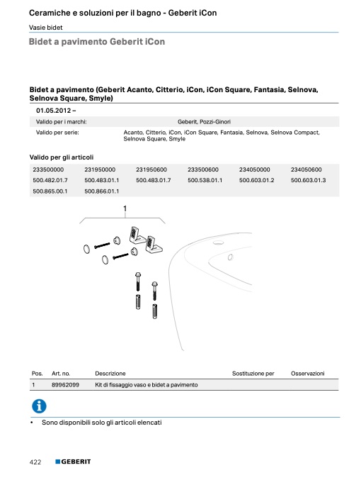Bidet a pavimento (Geberit Acanto, Citterio, iCon, iCon Square, Fantasia, Selnova,