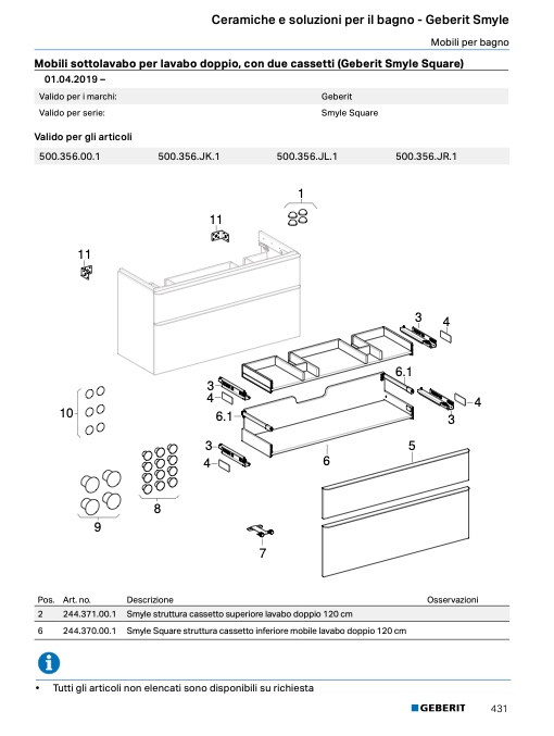 Mobili sottolavabo per lavabo doppio, con due cassetti (Geberit Smyle Square)