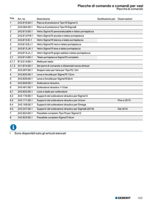 Placche di comando e comandi per WC
