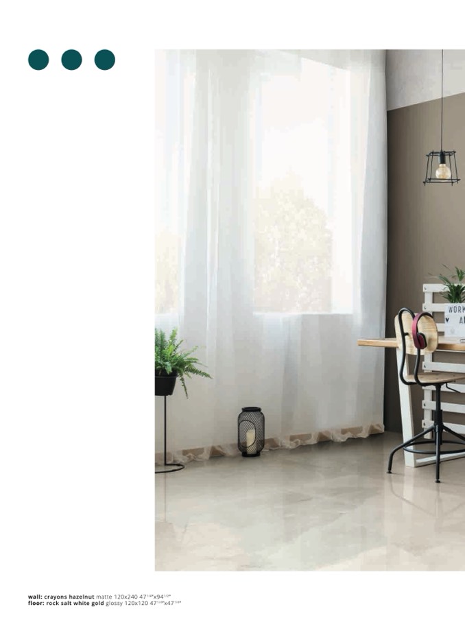 floor: rock salt white gold glossy 120x120 471/4”x471/4”
