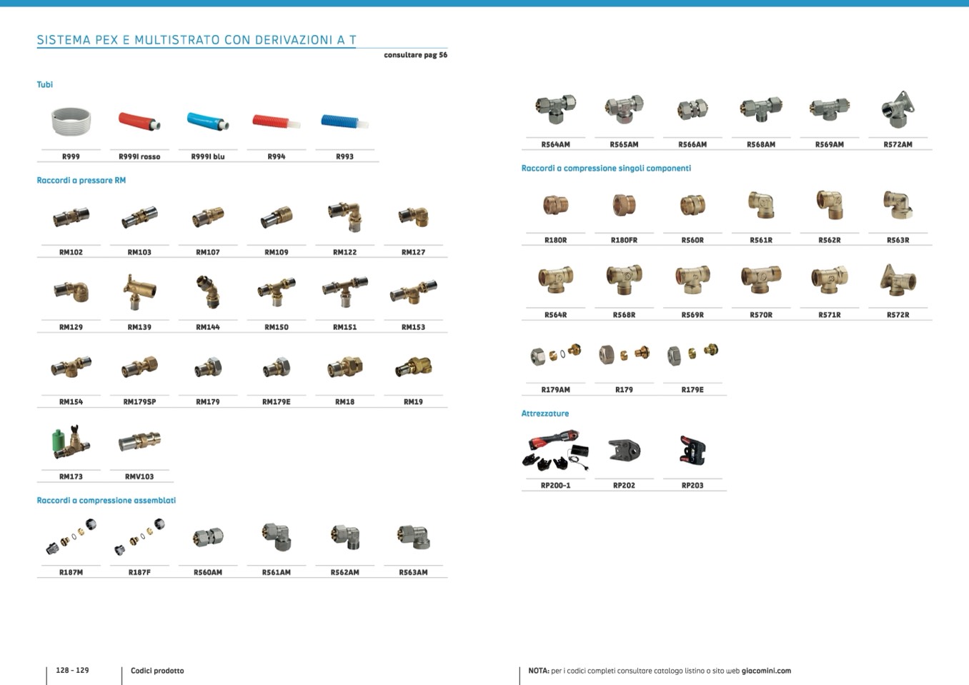 NOTA: per i codici completi consultare catalogo listino o sito web giacomini.com