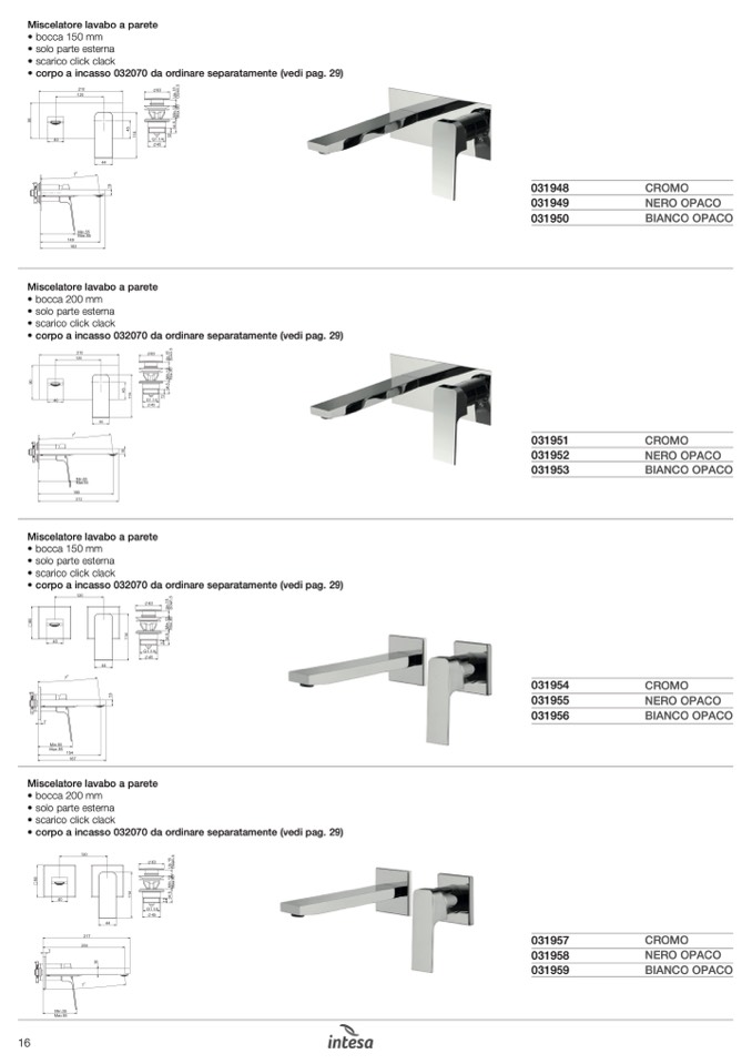 • corpo a incasso 032070 da ordinare separatamente (vedi pag. 29)