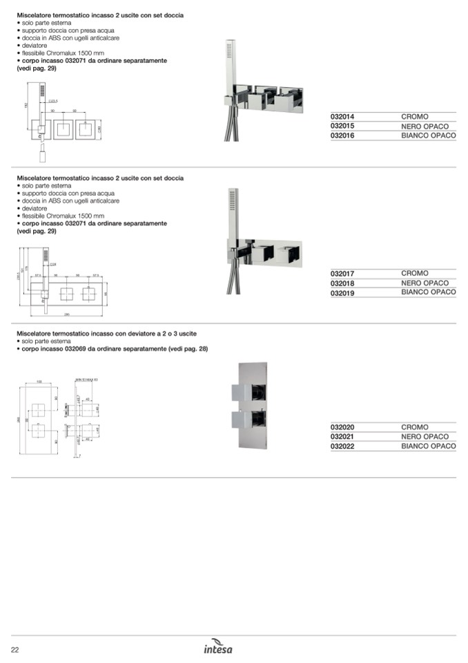 • corpo incasso 032069 da ordinare separatamente (vedi pag. 28)