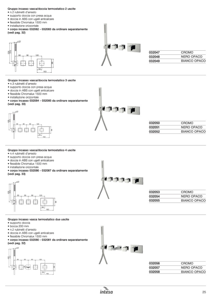 Gruppo incasso vasca/doccia termostatico 4 uscite
