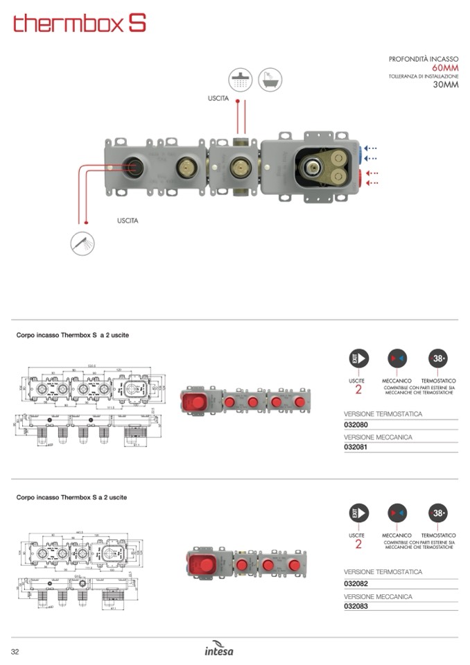 Corpo incasso Thermbox S a 2 uscite