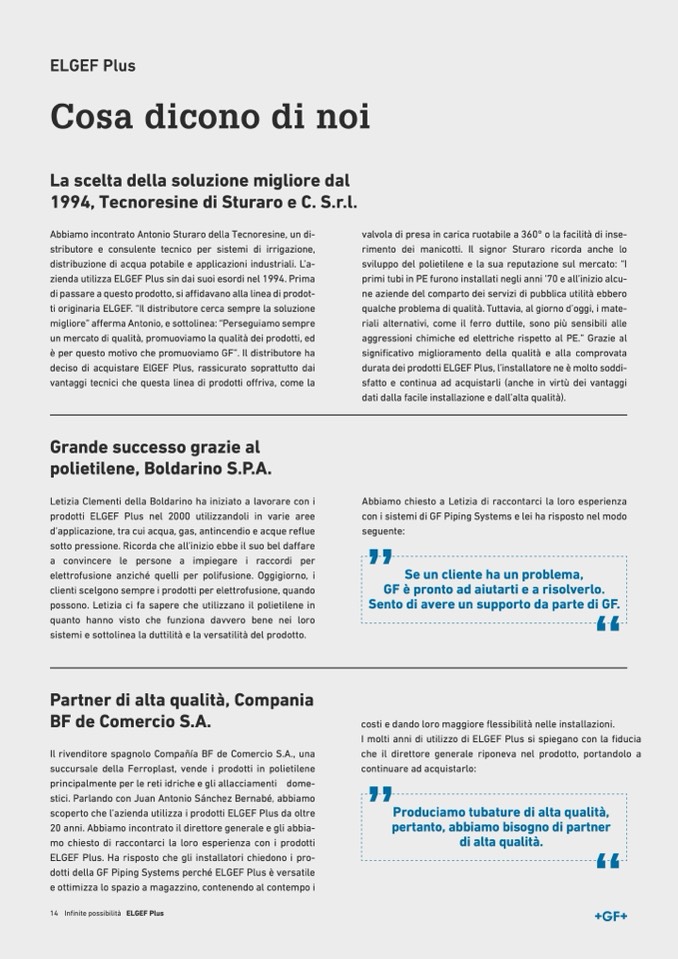 I molti anni di utilizzo di ELGEF Plus si spiegano con la fiducia