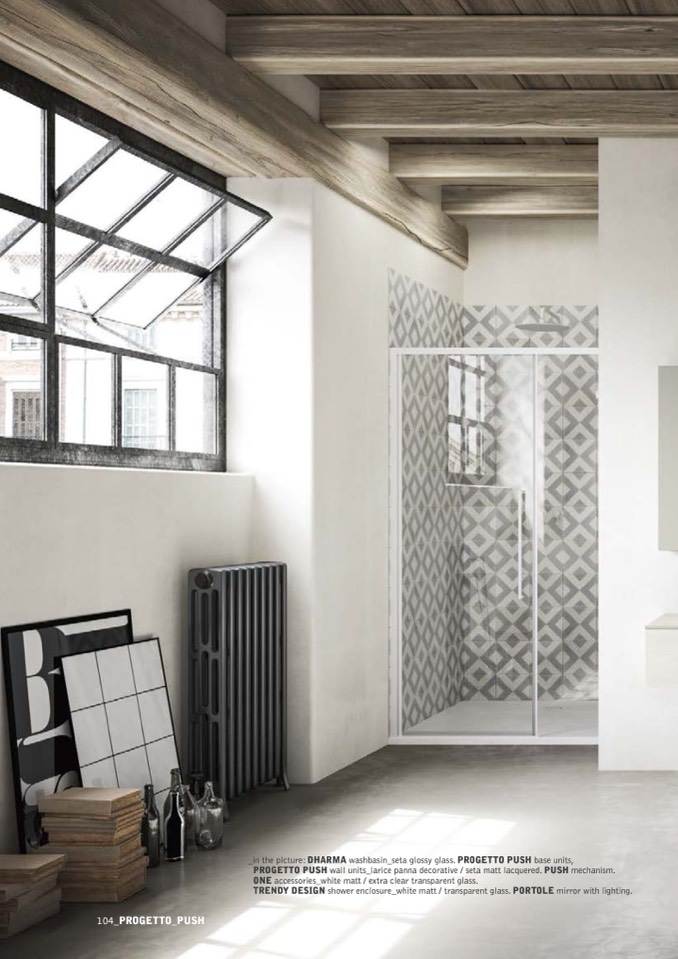 _in the picture: DHARMA washbasin_seta glossy glass. PROGETTO PUSH base units,