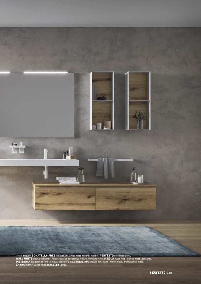 _in the picture: DONATELLO FREE washbasin_white matt mineral marble. PERFETTO side base units,