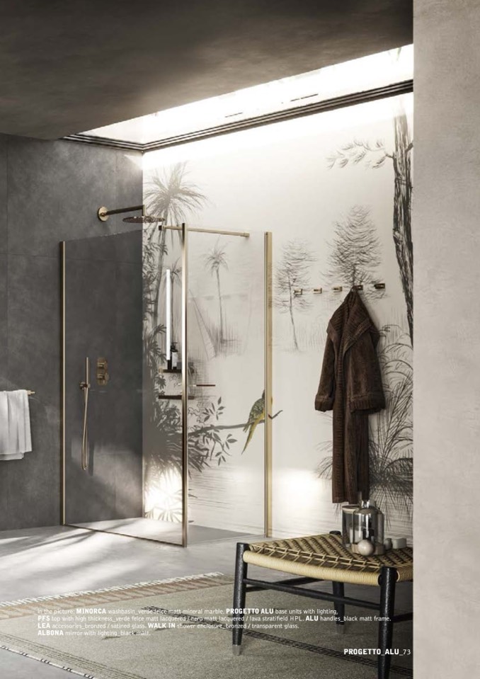 LEA accessories_bronzed / satined glass. WALK IN shower enclosure_bronzed / transparent glass.