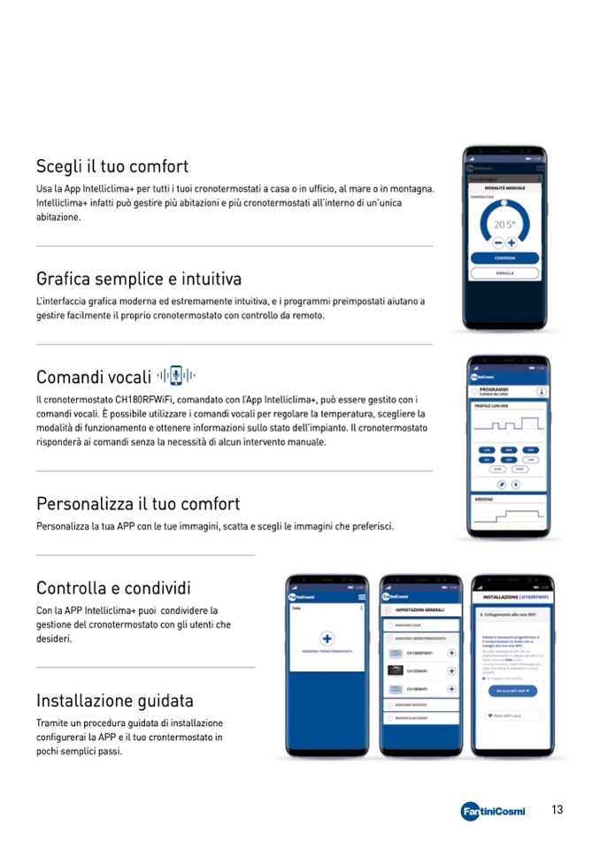 Usa la App Intelliclima+ per tutti i tuoi cronotermostati a casa o in ufficio, al mare o in montagna.