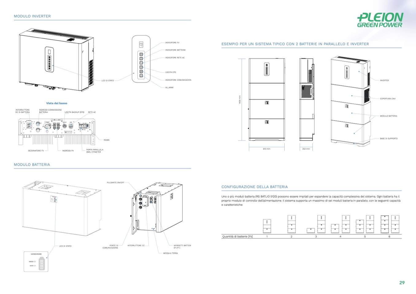 Uno o più moduli batteria (RS BATLIO 5120) possono essere impilati per espandere la capacità complessiva del sistema. Ogni batteria ha il