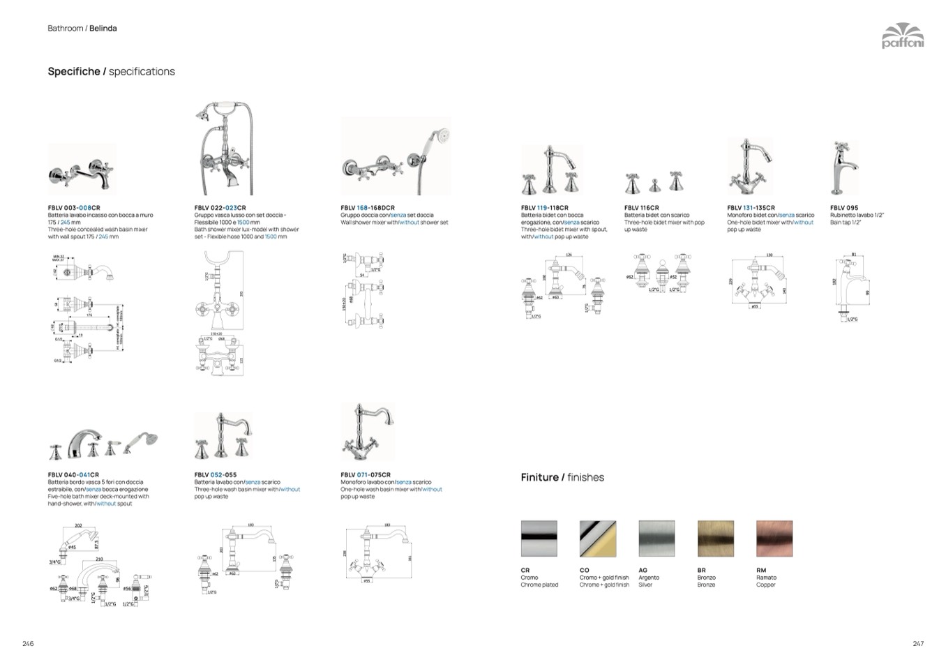 Batteria lavabo con/senza scarico
