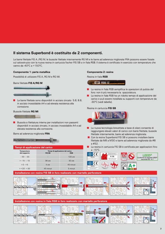 sul calcestruzzo con la nuova resina in cartuccia fischer FIS SB o in fiala RSB. Il sistema è certificato in esercizio con temperature che