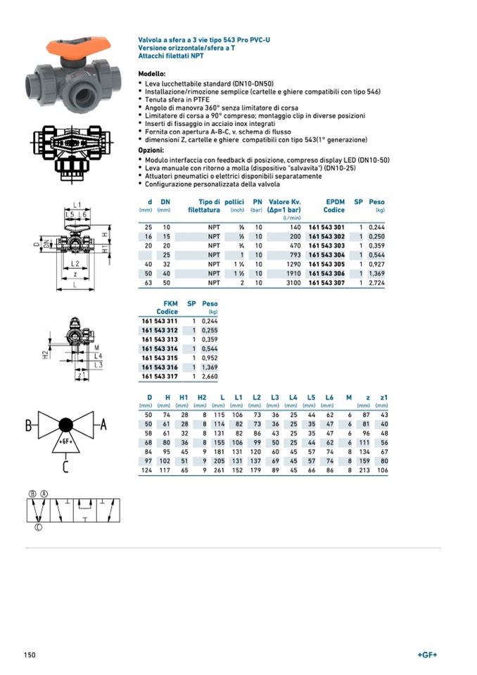 Valvola a sfera a 3 vie tipo 543 Pro PVC-U