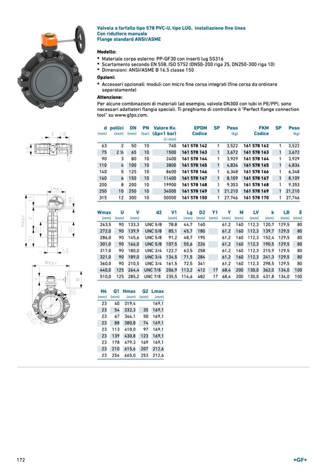 Valvola a farfalla tipo 578 PVC-U, tipo LUG, installazione fine linea