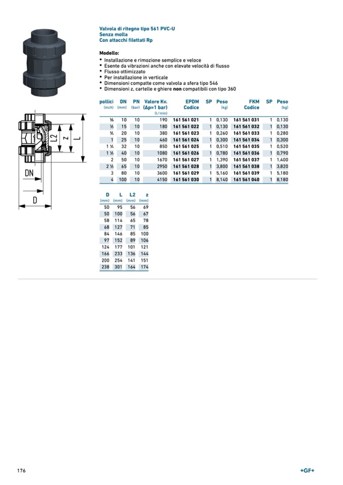Valvola di ritegno tipo 561 PVC-U