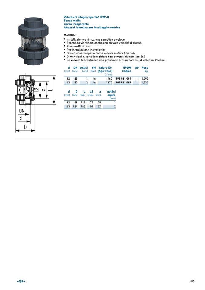 Valvola di ritegno tipo 561 PVC-U