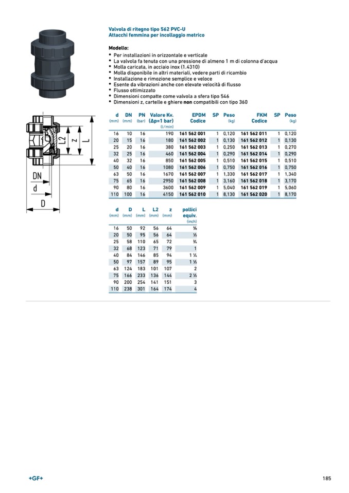 La valvola fa tenuta con una pressione di almeno 1 m di colonna d'acqua