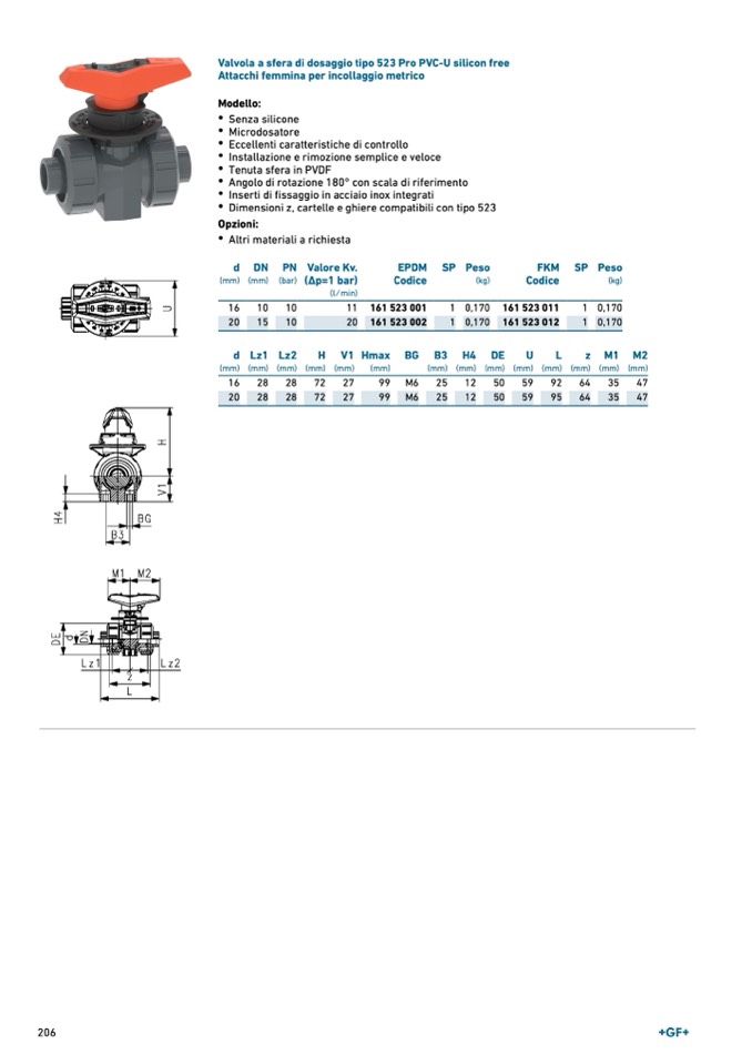 Valvola a sfera di dosaggio tipo 523 Pro PVC-U silicon free