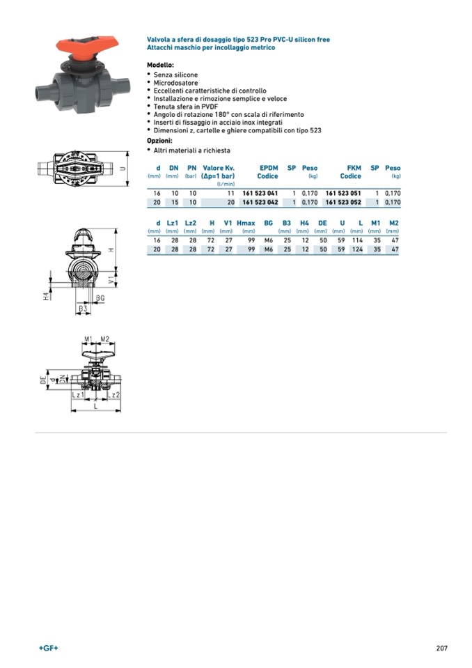 Valvola a sfera di dosaggio tipo 523 Pro PVC-U silicon free