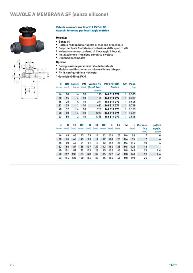 Valvola a membrana tipo 514 PVC-U OF