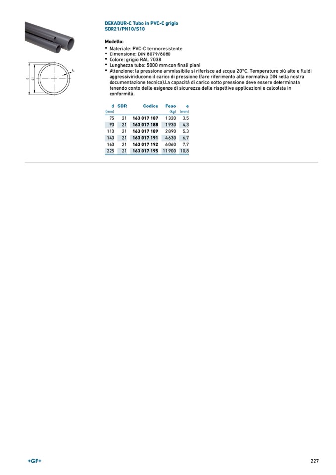 DEKADUR-C Tubo in PVC-C grigio