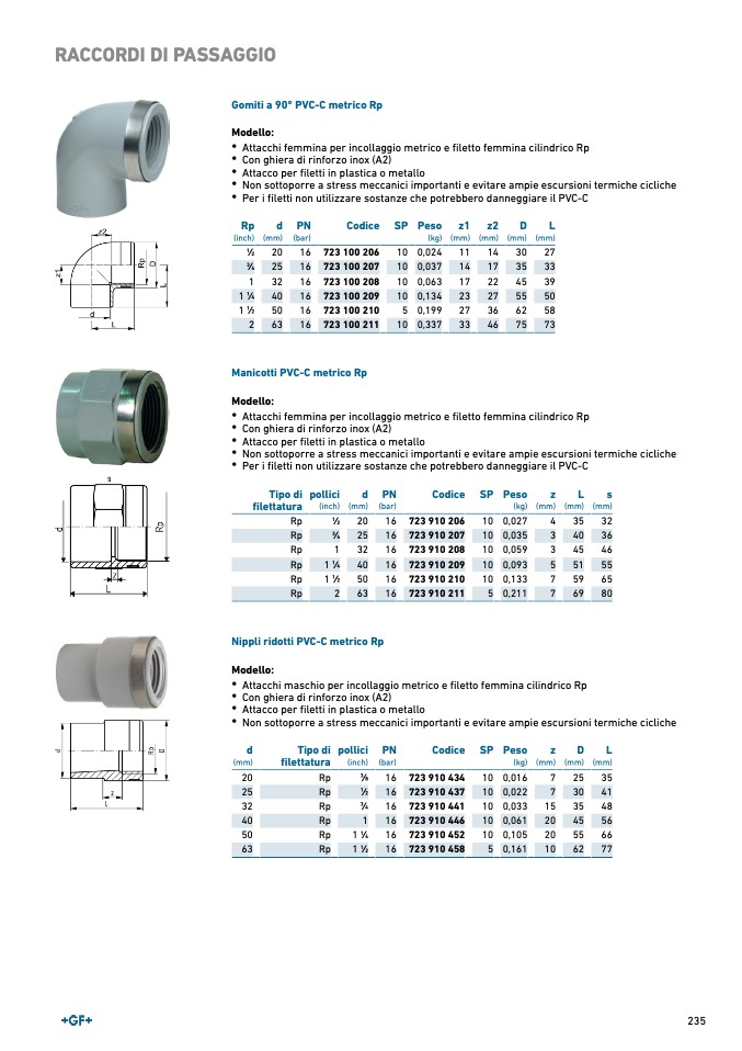 Attacchi femmina per incollaggio metrico e filetto femmina cilindrico Rp