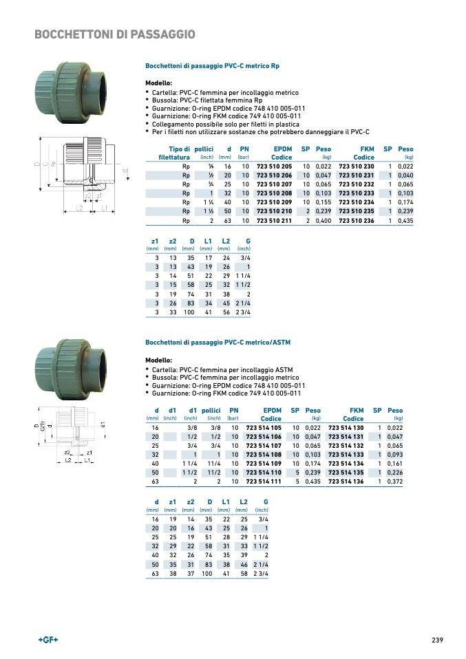 Bocchettoni di passaggio PVC-C metrico/ASTM