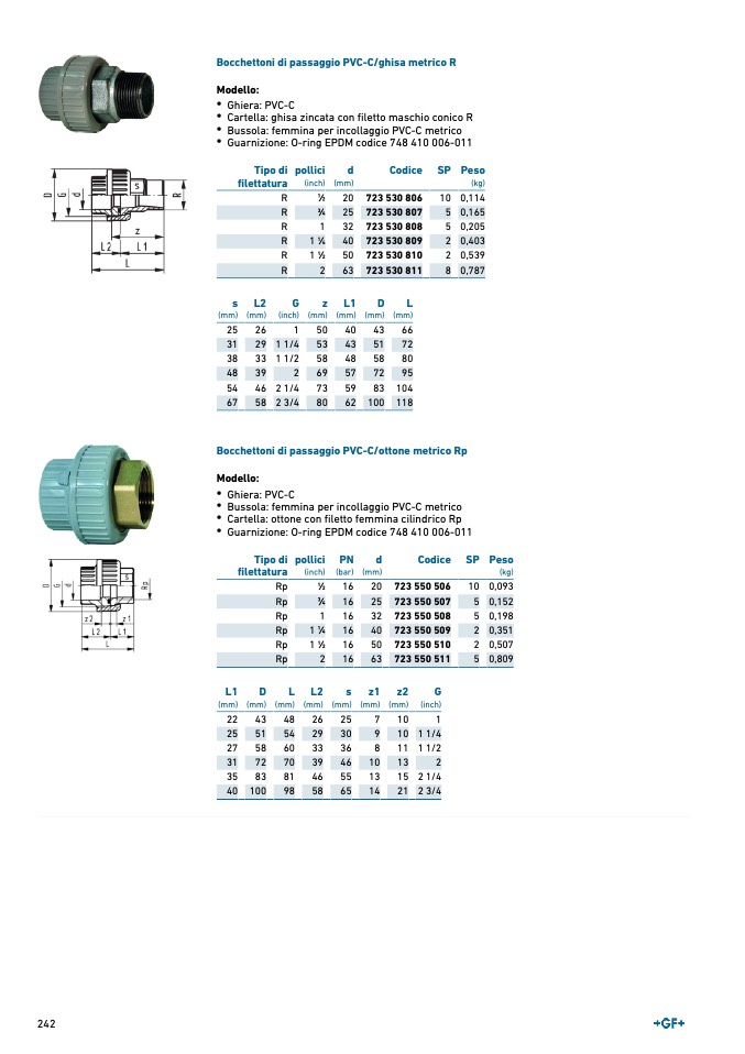 Bocchettoni di passaggio PVC-C/ghisa metrico R