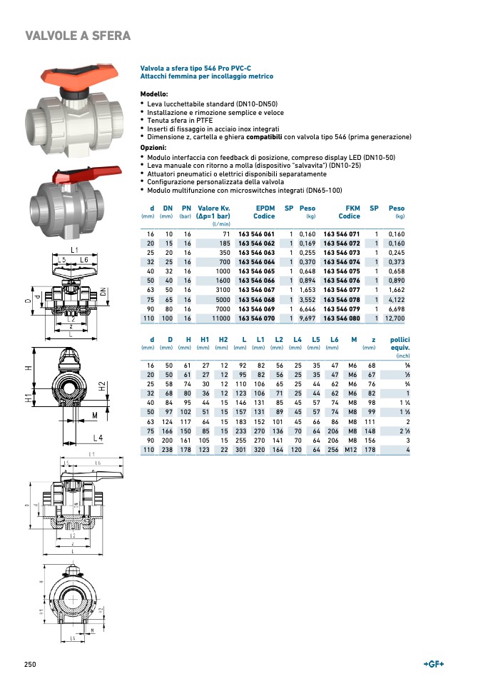 Dimensione z, cartella e ghiera compatibili con valvola tipo 546 (prima generazione)
