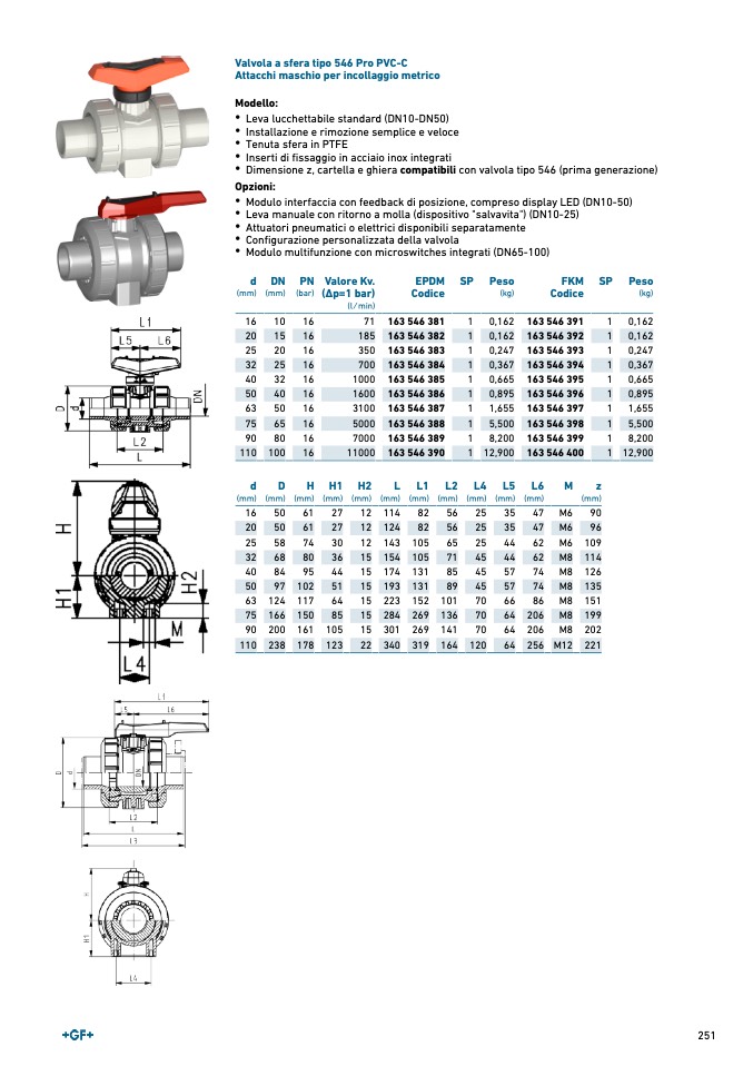 Valvola a sfera tipo 546 Pro PVC-C