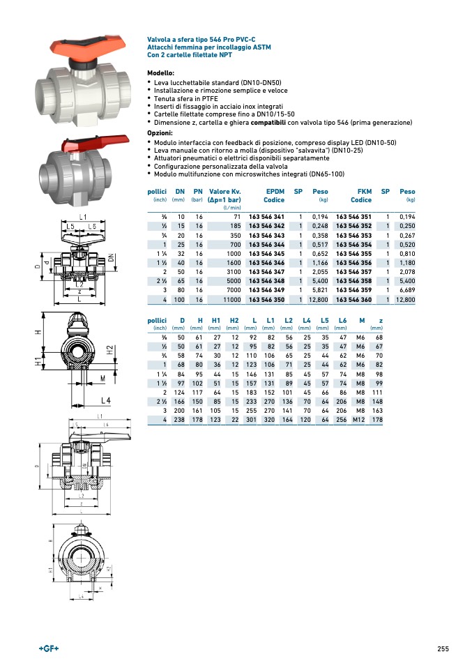 Dimensione z, cartella e ghiera compatibili con valvola tipo 546 (prima generazione)